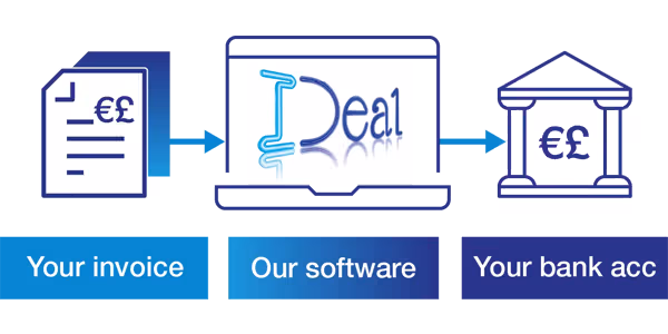 Our IDeal™ software works seamlessly with your business, allowing the cash value of your new invoices to be transferred into your bank account the moment they are raised.